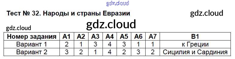 Ответы к Тестам по Географии 7 класс Контрольно-измерительные материалы (КИМ) Жижина ВАКО