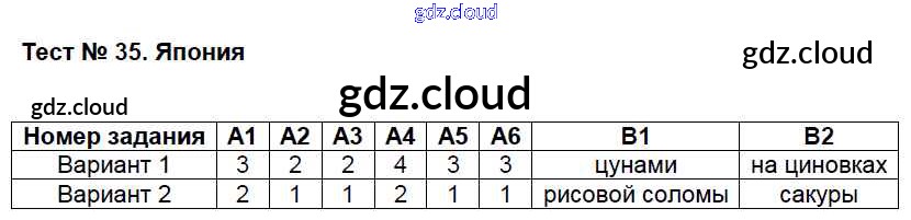Ответы к Тестам по Географии 7 класс Контрольно-измерительные материалы (КИМ) Жижина ВАКО