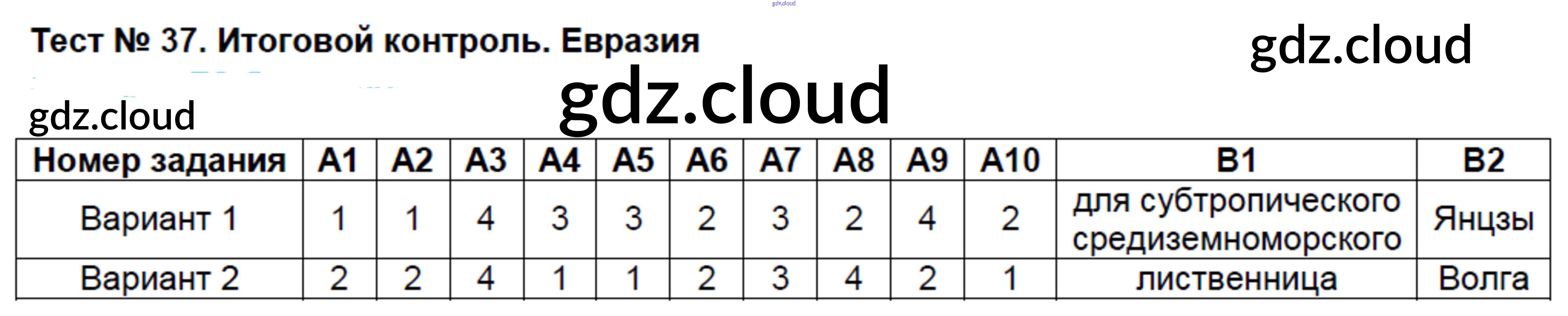 Ответы к Тестам по Географии 7 класс Контрольно-измерительные материалы (КИМ) Жижина ВАКО