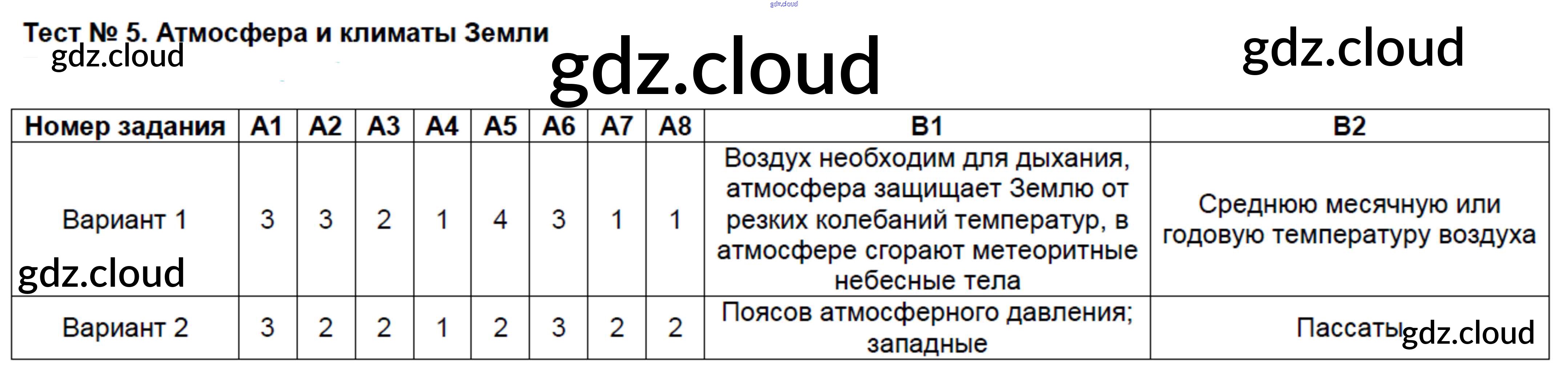 Ответы к Тестам по Географии 7 класс Контрольно-измерительные материалы (КИМ) Жижина ВАКО
