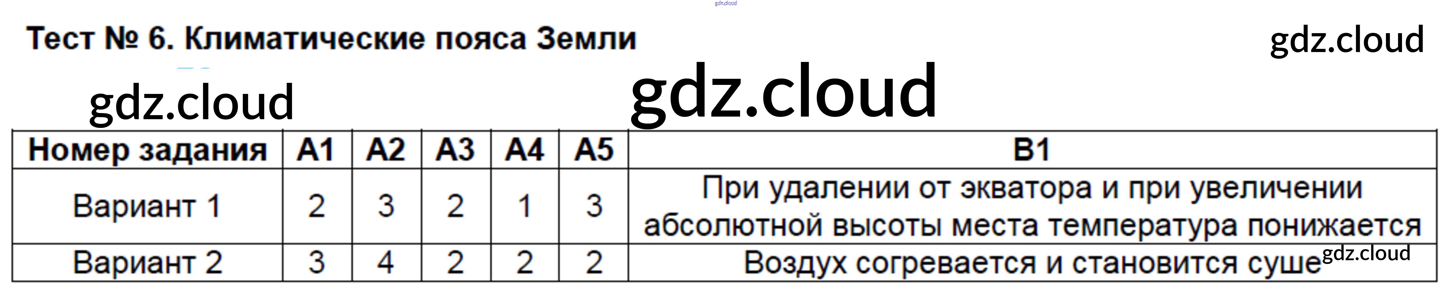 Ответы к Тестам по Географии 7 класс Контрольно-измерительные материалы (КИМ) Жижина ВАКО