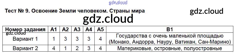 Ответы к Тестам по Географии 7 класс Контрольно-измерительные материалы (КИМ) Жижина ВАКО