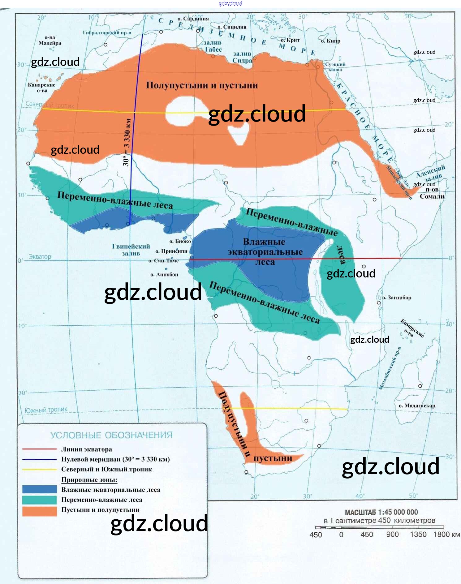 Ответ на задание Африка. Физическая карта Контурные карты География за 7 (седьмой) класс Петрова Полярная звезда 2022