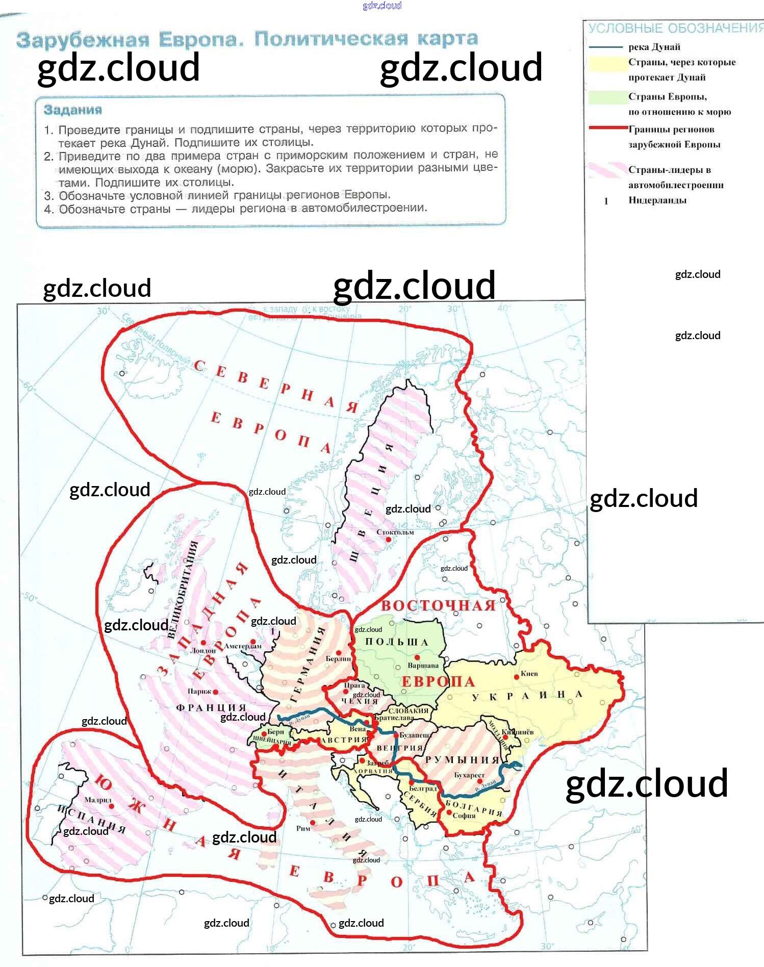 Ответ на задание Зарубежная Европа. Политическая карта Контурные карты География за 7 (седьмой) класс Петрова Полярная звезда 2022