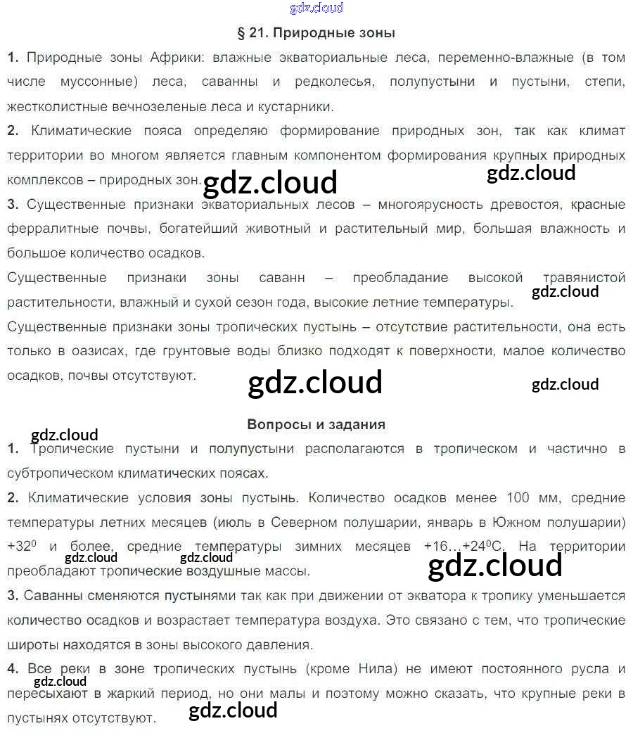 Ответ на задание 21 Учебник География за 7 (седьмой) класс Коринская, Душина, Щенев 2017 ФГОС онлайн и без номера телефона.