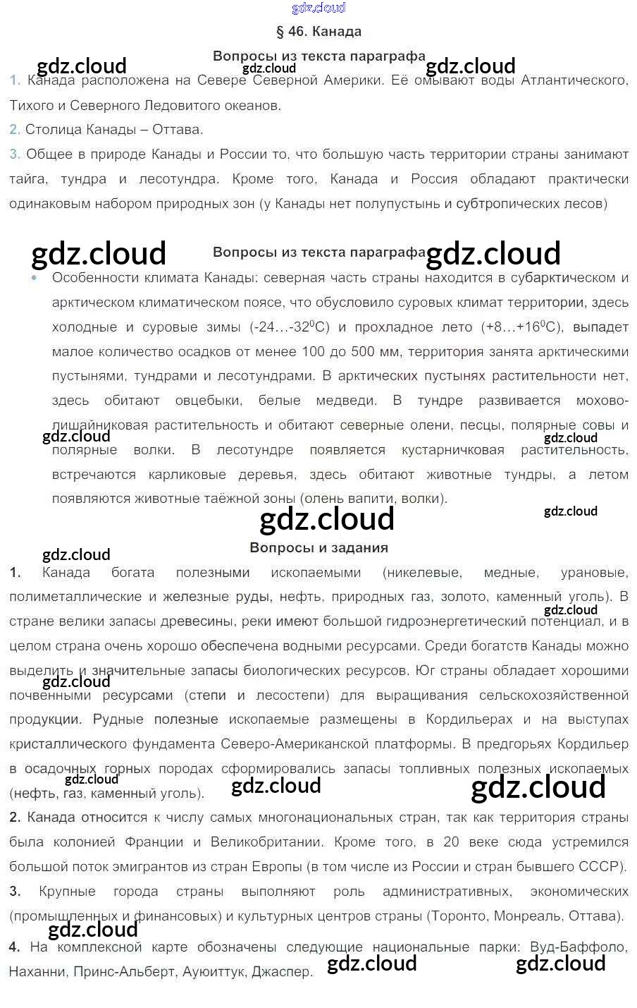Ответы к Параграфам по Географии 7 класс Учебник Коринская Дрофа