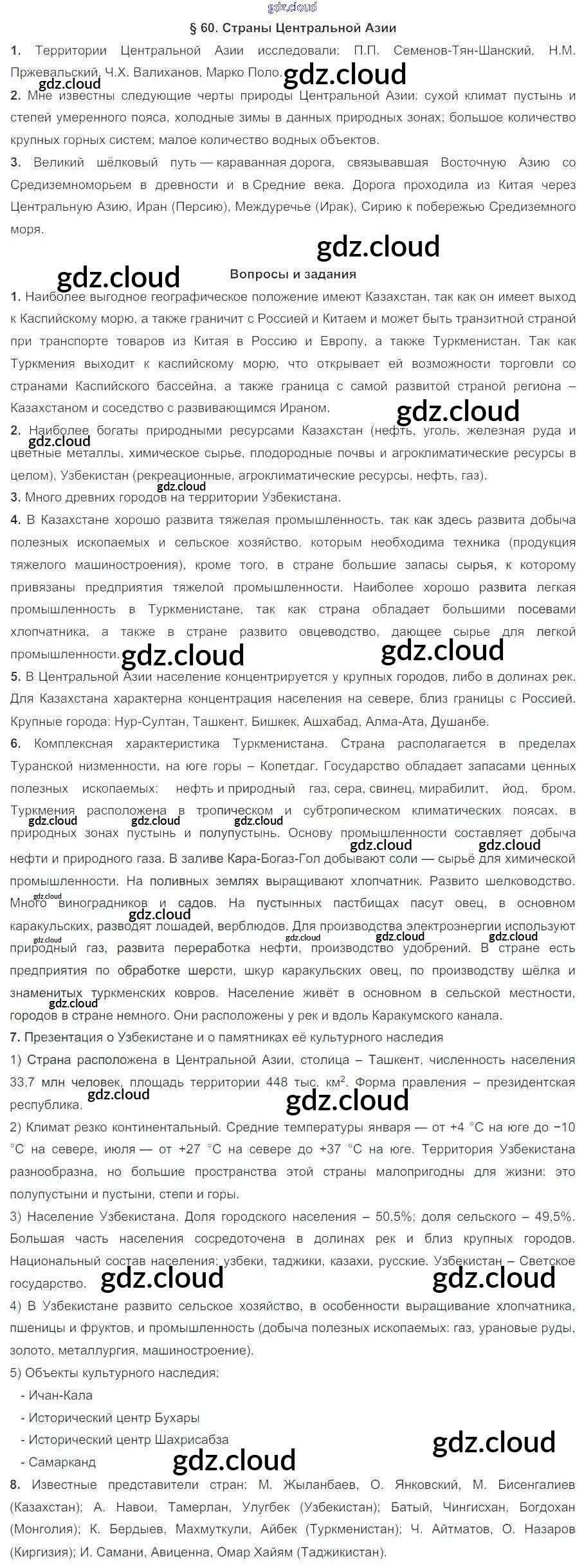 Ответ на задание 60 Учебник География за 7 (седьмой) класс Коринская, Душина, Щенев 2017 ФГОС онлайн и без номера телефона.