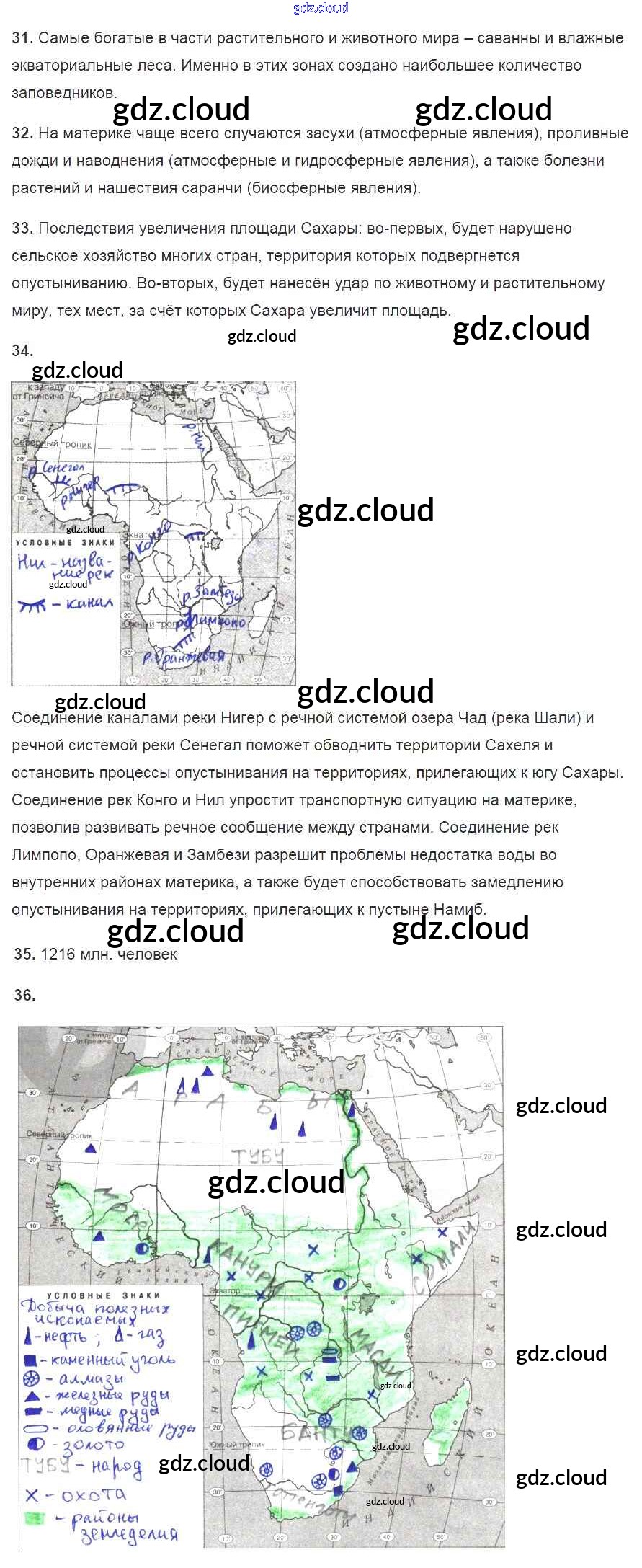 Ответы к Страницам по Географии 7 класс Рабочая тетрадь Душина УМК Дрофа