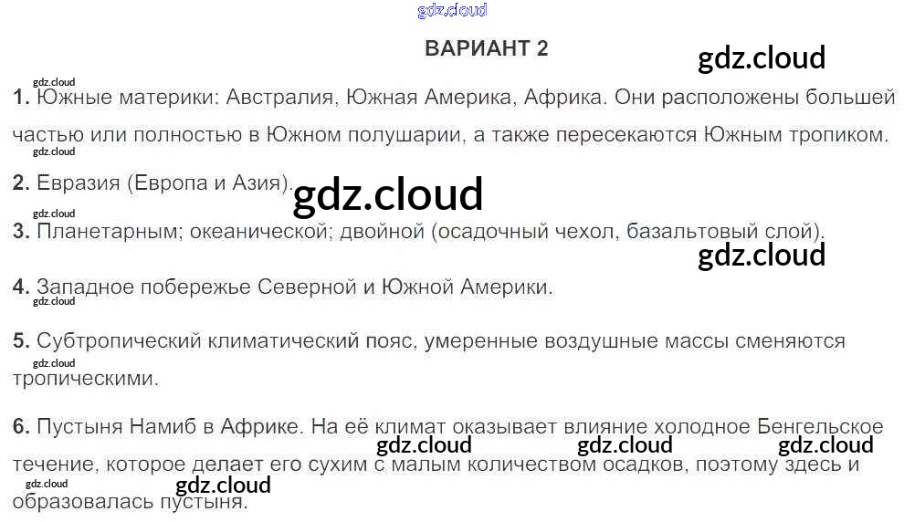 Ответы к Страницам по Географии 7 класс Тетрадь-экзаменатор Баранов Сферы Просвещение