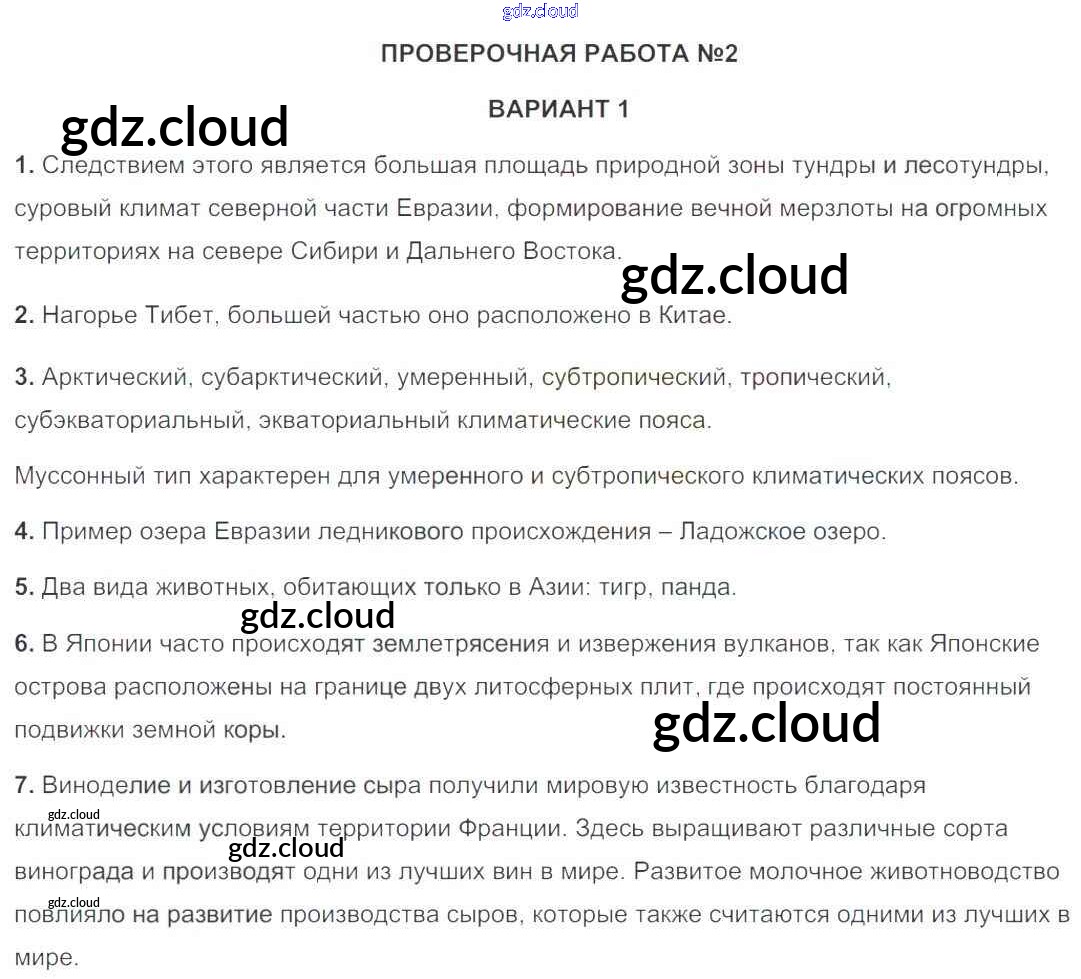 Ответы к Страницам по Географии 7 класс Тетрадь-экзаменатор Баранов Сферы Просвещение