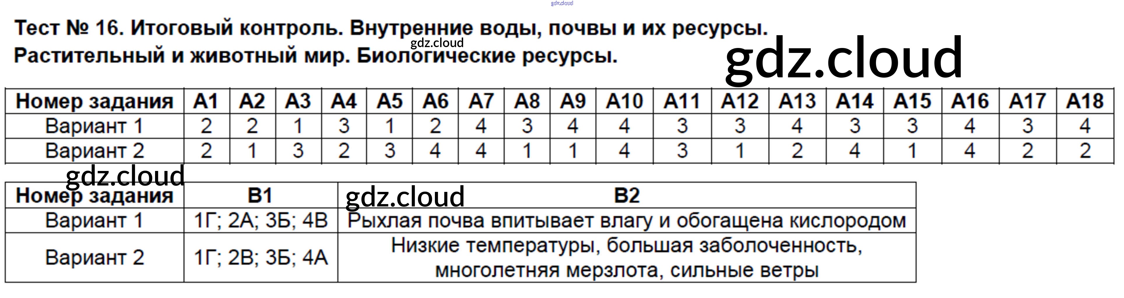 Ответы к Тестам по Географии 8 класс Контрольно-измерительные материалы (КИМ) Жижина ВАКО