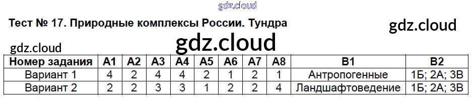 Ответы к Тестам по Географии 8 класс Контрольно-измерительные материалы (КИМ) Жижина ВАКО