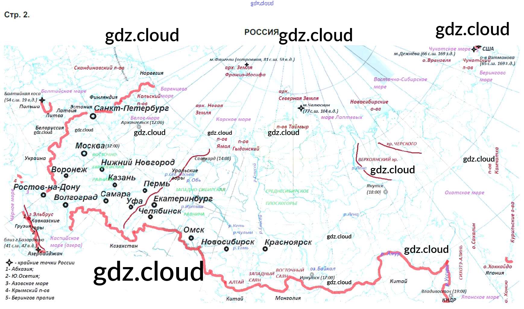 Ответ на задание 2 Контурные карты География за 8 (восьмой) класс Раковская 2020 ФГОС онлайн и без номера телефона.