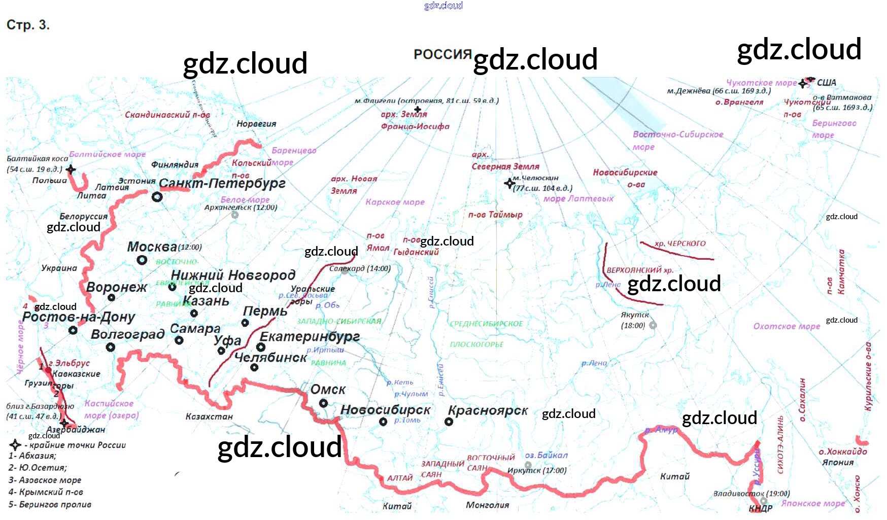 Ответ на задание 3 Контурные карты География за 8 (восьмой) класс Раковская 2020 ФГОС онлайн и без номера телефона.