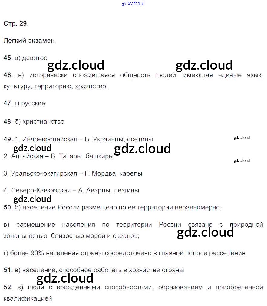 Ответ на задание 29 Мой тренажёр География за 8 (восьмой) класс Николина Полярная звезда 2016 ФГОС онлайн и без номера телефона.