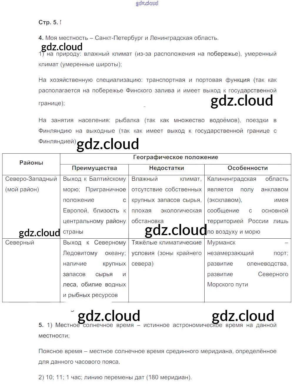 Ответ на задание 5 Мой тренажёр География за 8 (восьмой) класс Николина Полярная звезда 2016 ФГОС онлайн и без номера телефона.