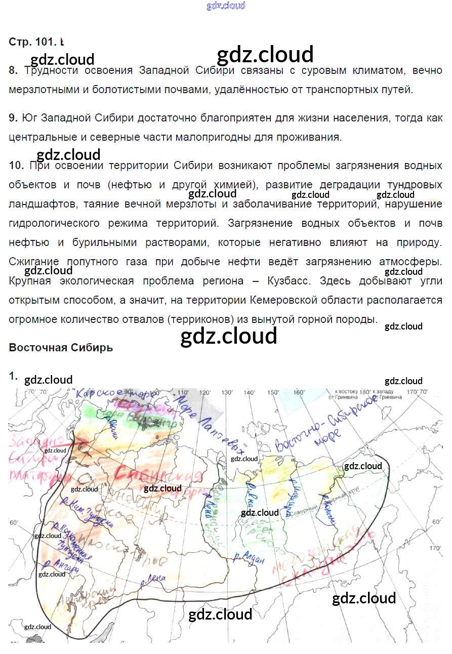 Ответ на задание 101 Рабочая тетрадь География за 8 (восьмой) класс Баринова УМК 2018 ФГОС онлайн и без номера телефона.