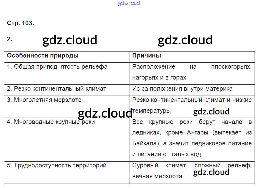 Ответ на задание 103 Рабочая тетрадь География за 8 (восьмой) класс Баринова УМК 2018 ФГОС онлайн и без номера телефона.