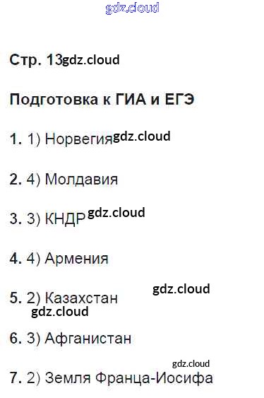 Ответ на задание 13 Рабочая тетрадь География за 8 (восьмой) класс Баринова УМК 2018 ФГОС онлайн и без номера телефона.