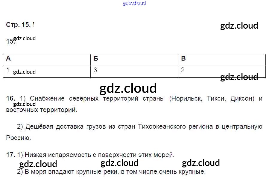 Ответ на задание 15 Рабочая тетрадь География за 8 (восьмой) класс Баринова УМК 2018 ФГОС онлайн и без номера телефона.