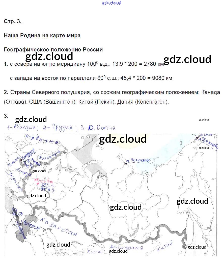 Ответ на задание 3 Рабочая тетрадь География за 8 (восьмой) класс Баринова УМК 2018 ФГОС онлайн и без номера телефона.