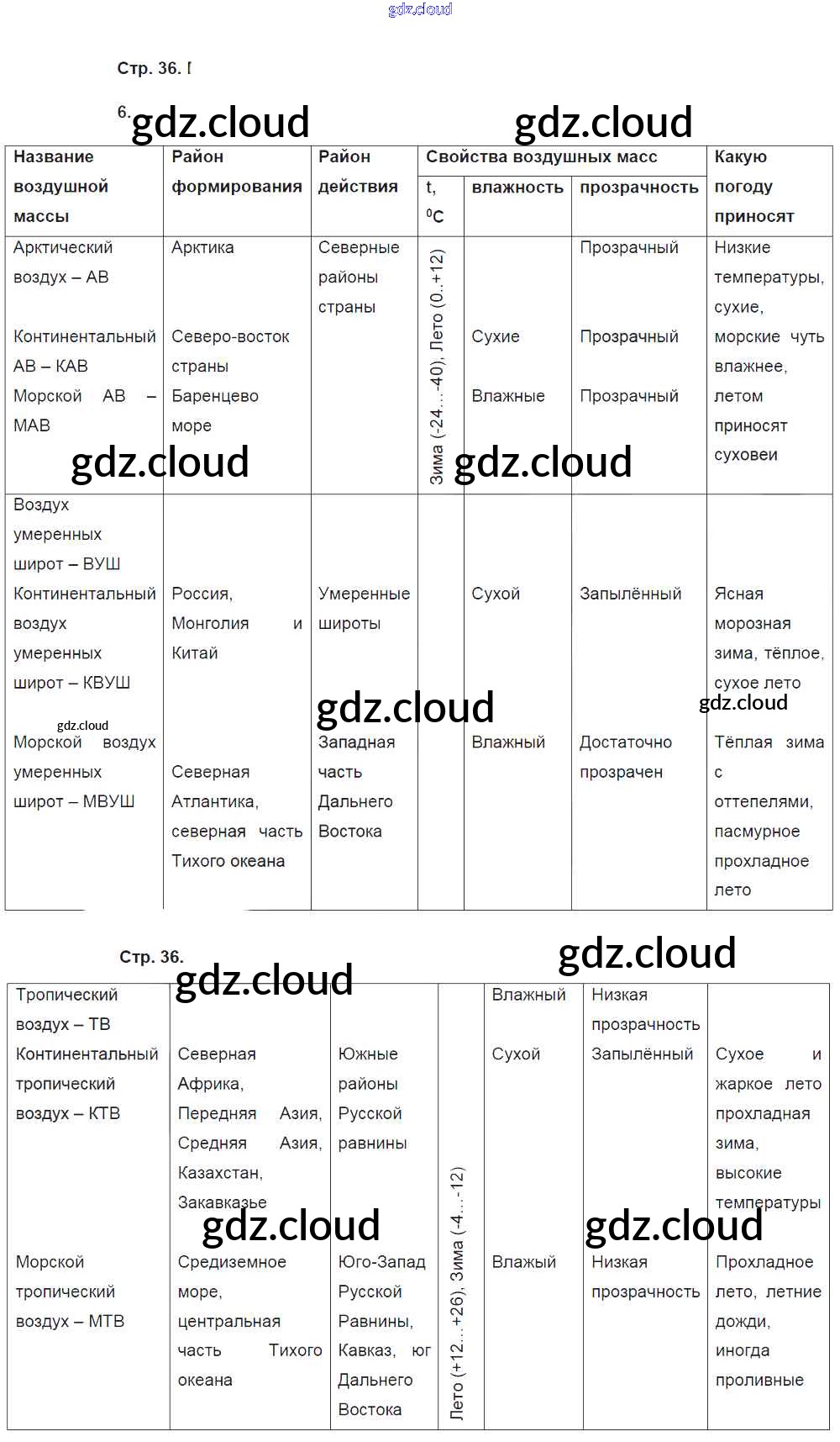 Ответ на задание 36 Рабочая тетрадь География за 8 (восьмой) класс Баринова УМК 2018 ФГОС онлайн и без номера телефона.