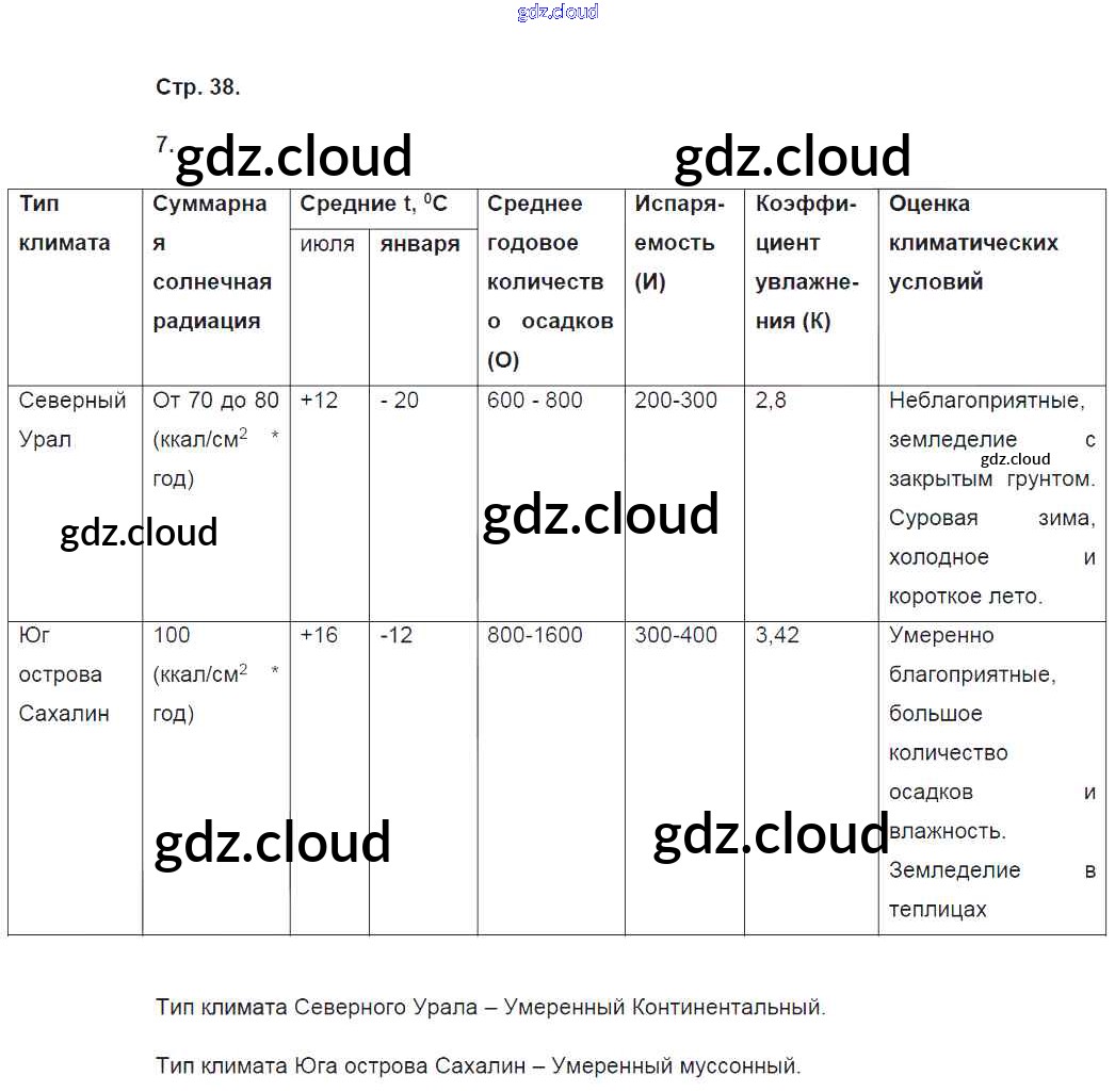 Ответ на задание 38 Рабочая тетрадь География за 8 (восьмой) класс Баринова УМК 2018 ФГОС онлайн и без номера телефона.