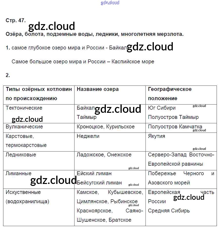 Ответ на задание 47 Рабочая тетрадь География за 8 (восьмой) класс Баринова УМК 2018 ФГОС онлайн и без номера телефона.