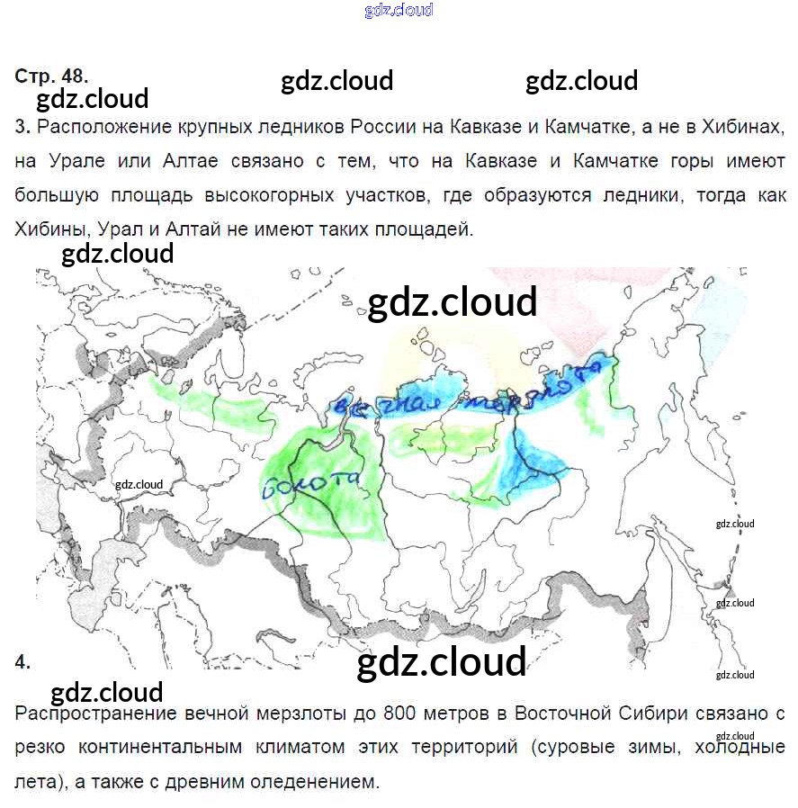 Ответ на задание 48 Рабочая тетрадь География за 8 (восьмой) класс Баринова УМК 2018 ФГОС онлайн и без номера телефона.