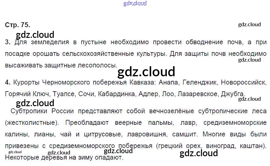 Ответ на задание 75 Рабочая тетрадь География за 8 (восьмой) класс Баринова УМК 2018 ФГОС онлайн и без номера телефона.