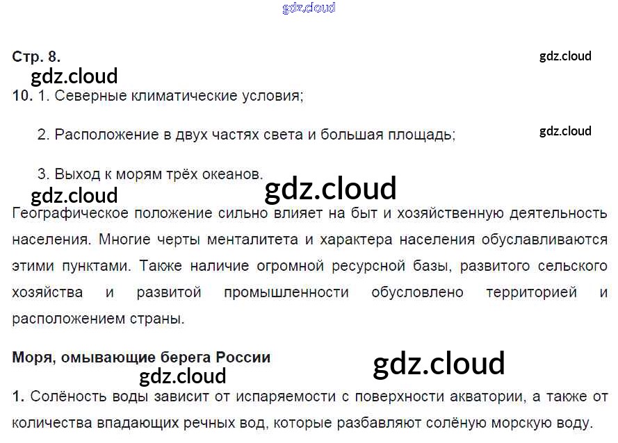 Ответ на задание 8 Рабочая тетрадь География за 8 (восьмой) класс Баринова УМК 2018 ФГОС онлайн и без номера телефона.