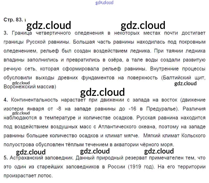 Ответ на задание 83 Рабочая тетрадь География за 8 (восьмой) класс Баринова УМК 2018 ФГОС онлайн и без номера телефона.