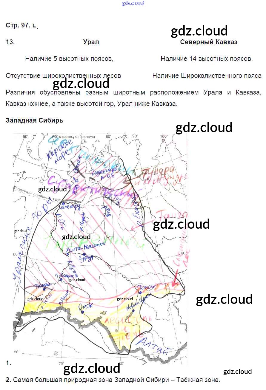 Ответ на задание 97 Рабочая тетрадь География за 8 (восьмой) класс Баринова УМК 2018 ФГОС онлайн и без номера телефона.