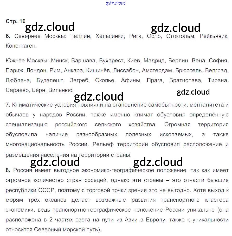 Ответ на задание 10 Рабочая тетрадь География за 8 (восьмой) класс Баринова, Дронов УМК 2017 ФГОС онлайн и без номера телефона.