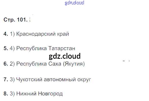 Ответ на задание 101 Рабочая тетрадь География за 8 (восьмой) класс Баринова, Дронов УМК 2017 ФГОС онлайн и без номера телефона.