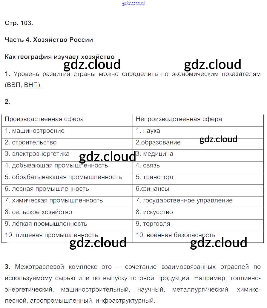 Ответ на задание 103 Рабочая тетрадь География за 8 (восьмой) класс Баринова, Дронов УМК 2017 ФГОС онлайн и без номера телефона.