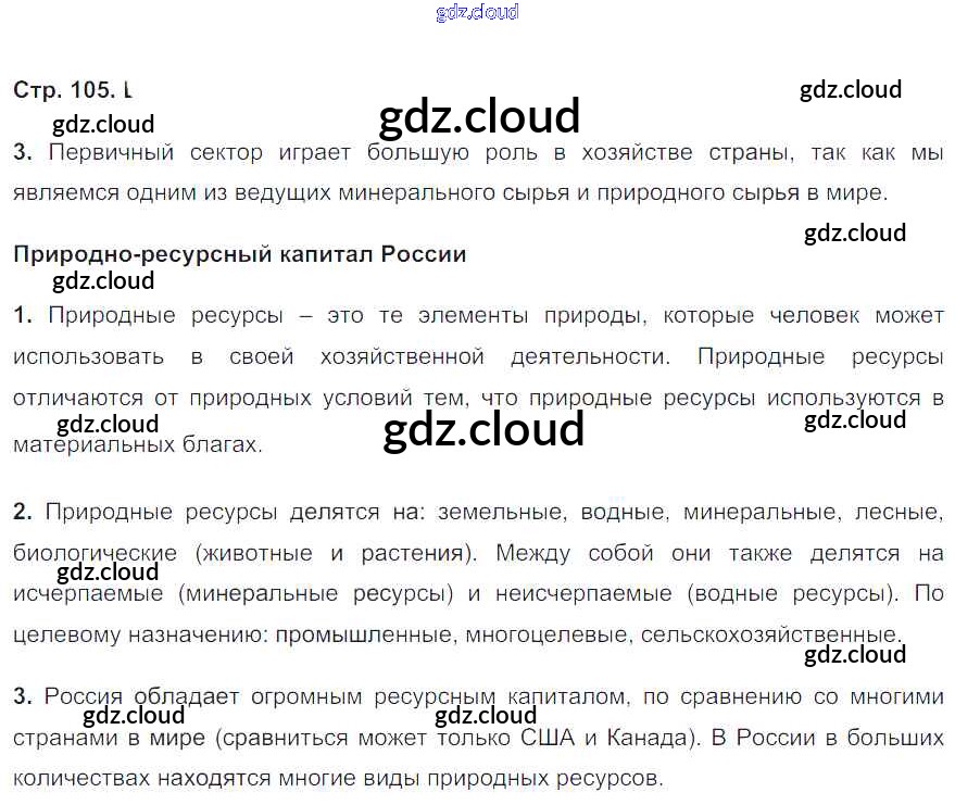 Ответ на задание 105 Рабочая тетрадь География за 8 (восьмой) класс Баринова, Дронов УМК 2017 ФГОС онлайн и без номера телефона.