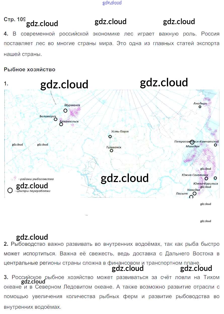 Ответ на задание 109 Рабочая тетрадь География за 8 (восьмой) класс Баринова, Дронов УМК 2017 ФГОС онлайн и без номера телефона.