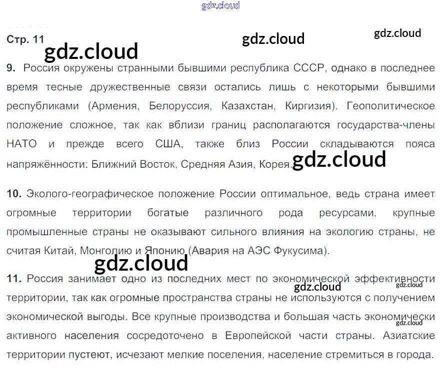 Ответ на задание 11 Рабочая тетрадь География за 8 (восьмой) класс Баринова, Дронов УМК 2017 ФГОС онлайн и без номера телефона.