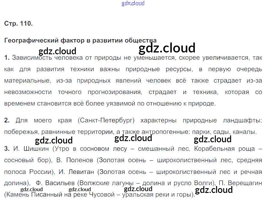 Ответ на задание 110 Рабочая тетрадь География за 8 (восьмой) класс Баринова, Дронов УМК 2017 ФГОС онлайн и без номера телефона.