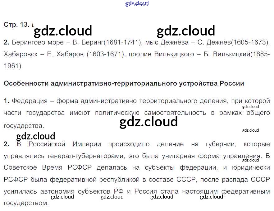 Ответ на задание 13 Рабочая тетрадь География за 8 (восьмой) класс Баринова, Дронов УМК 2017 ФГОС онлайн и без номера телефона.
