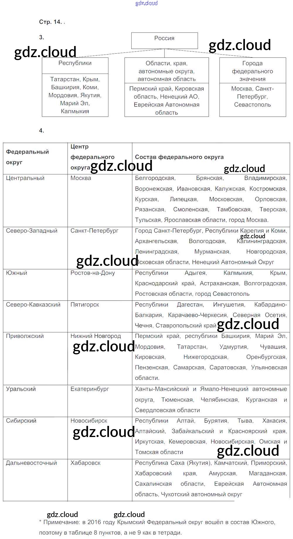 Ответ на задание 14 Рабочая тетрадь География за 8 (восьмой) класс Баринова, Дронов УМК 2017 ФГОС онлайн и без номера телефона.
