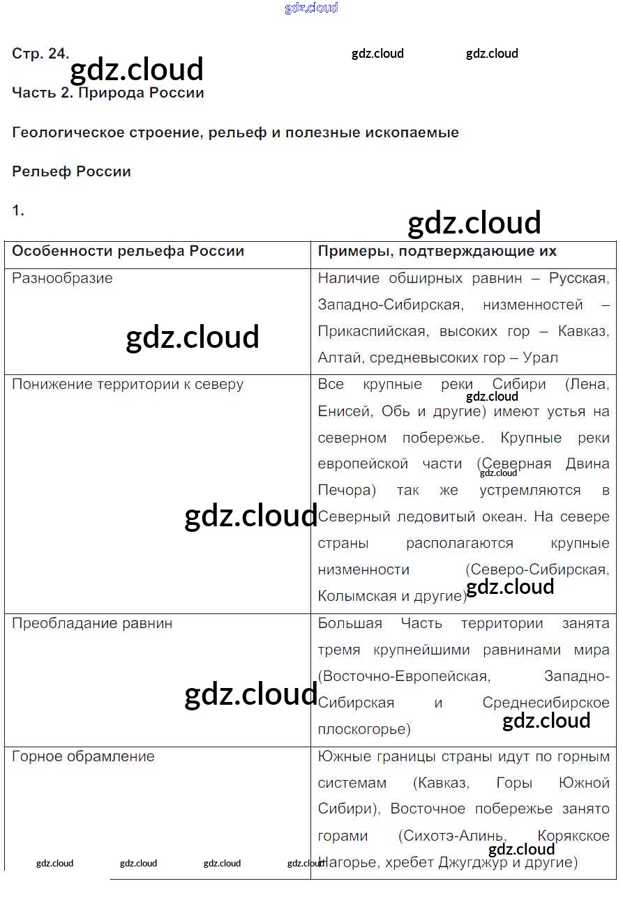 Ответ на задание 24 Рабочая тетрадь География за 8 (восьмой) класс Баринова, Дронов УМК 2017 ФГОС онлайн и без номера телефона.