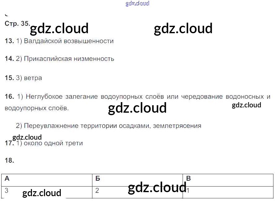 Ответ на задание 35 Рабочая тетрадь География за 8 (восьмой) класс Баринова, Дронов УМК 2017 ФГОС онлайн и без номера телефона.