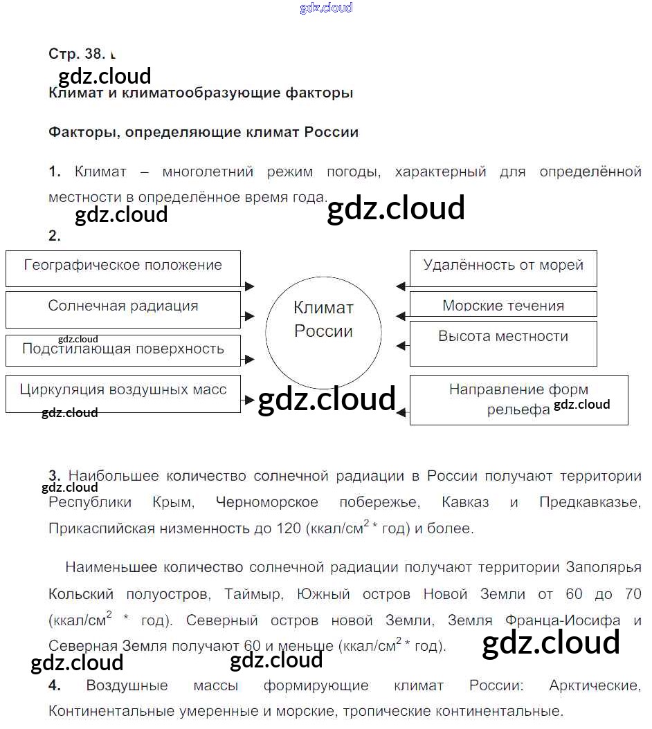 Ответ на задание 38 Рабочая тетрадь География за 8 (восьмой) класс Баринова, Дронов УМК 2017 ФГОС онлайн и без номера телефона.