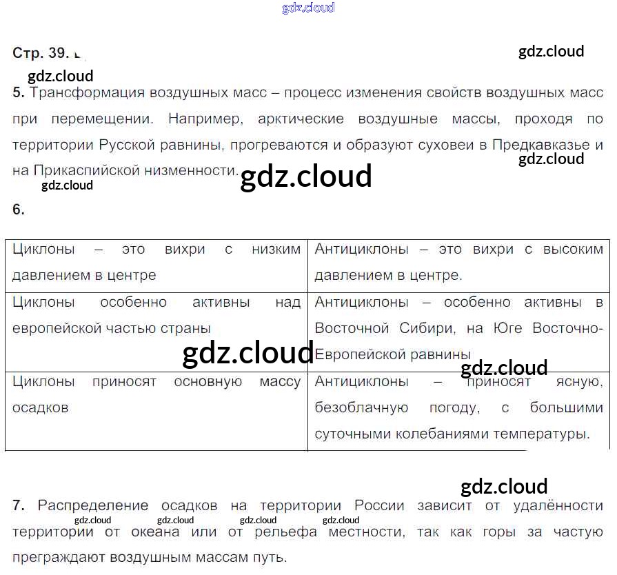 Ответ на задание 39 Рабочая тетрадь География за 8 (восьмой) класс Баринова, Дронов УМК 2017 ФГОС онлайн и без номера телефона.