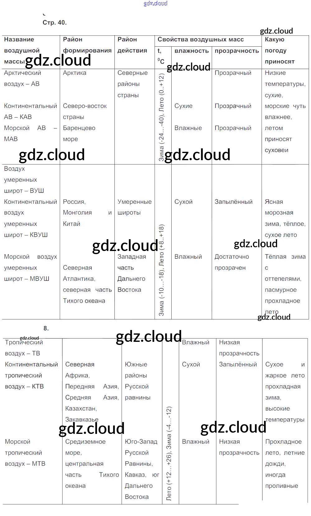 Ответ на задание 40 Рабочая тетрадь География за 8 (восьмой) класс Баринова, Дронов УМК 2017 ФГОС онлайн и без номера телефона.