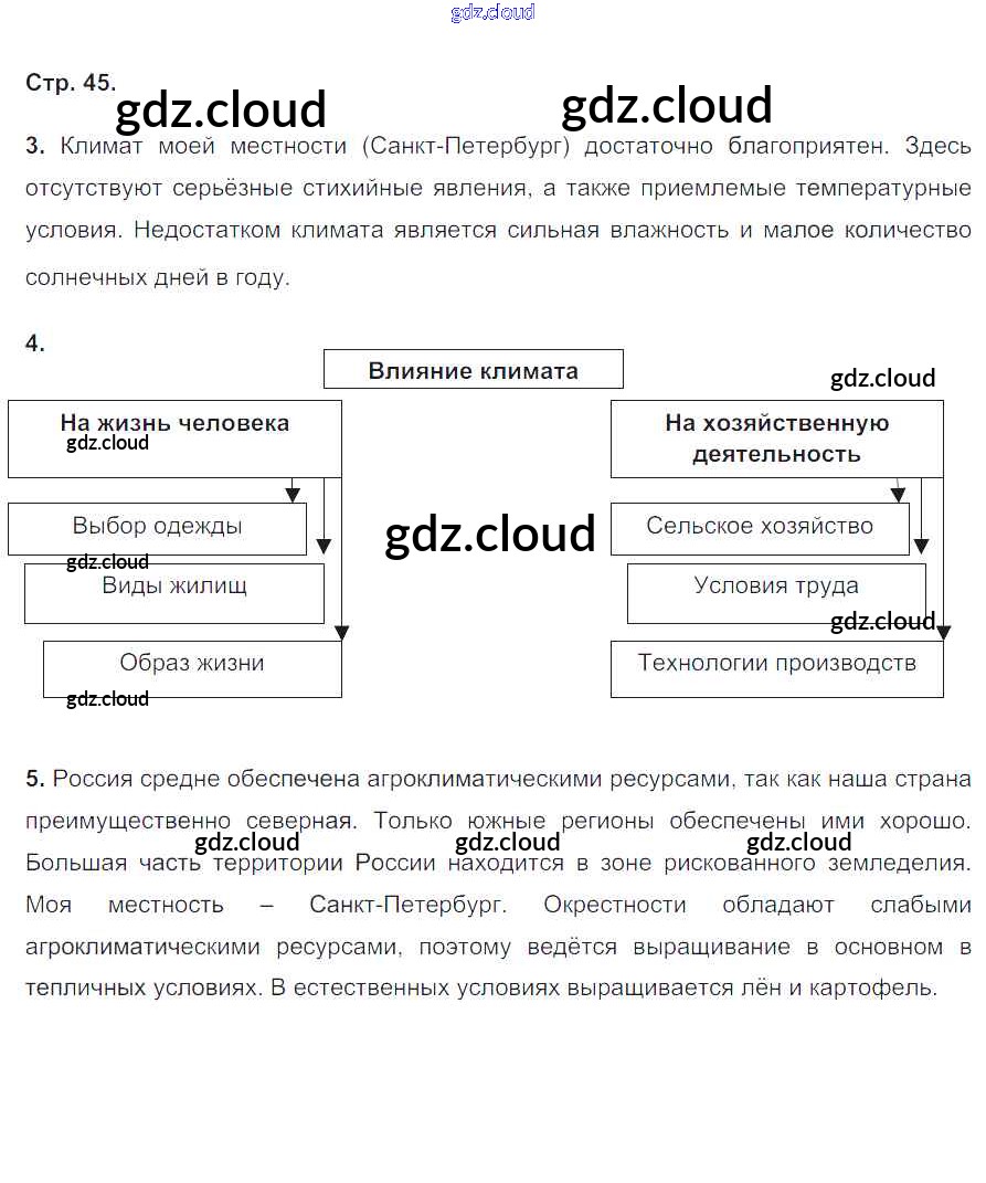 Ответ на задание 45 Рабочая тетрадь География за 8 (восьмой) класс Баринова, Дронов УМК 2017 ФГОС онлайн и без номера телефона.