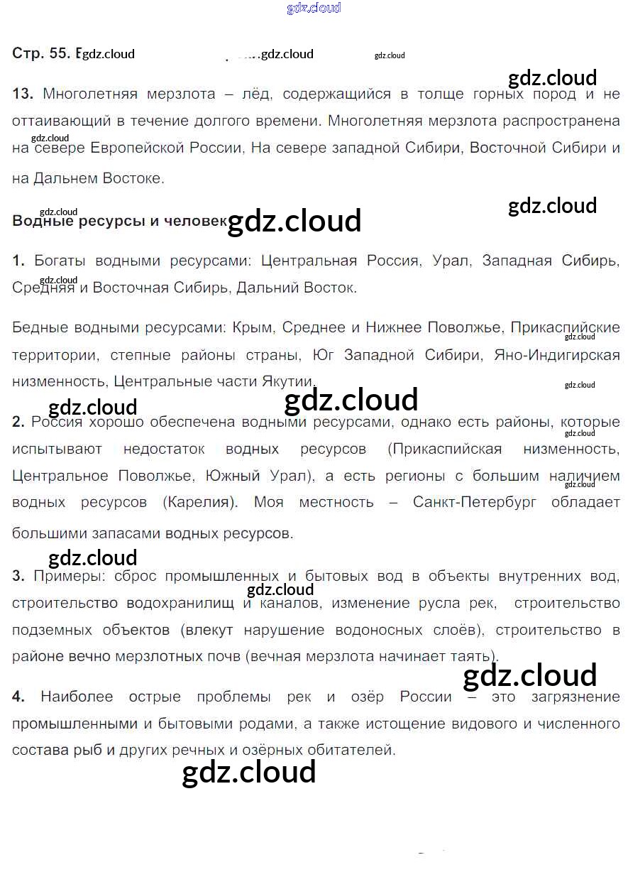 Ответ на задание 55 Рабочая тетрадь География за 8 (восьмой) класс Баринова, Дронов УМК 2017 ФГОС онлайн и без номера телефона.