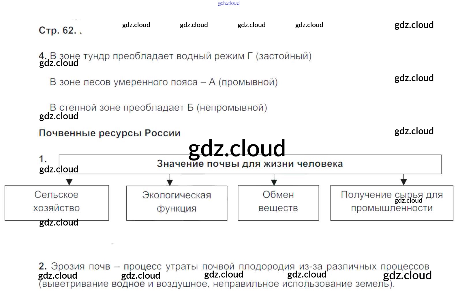 Ответ на задание 62 Рабочая тетрадь География за 8 (восьмой) класс Баринова, Дронов УМК 2017 ФГОС онлайн и без номера телефона.